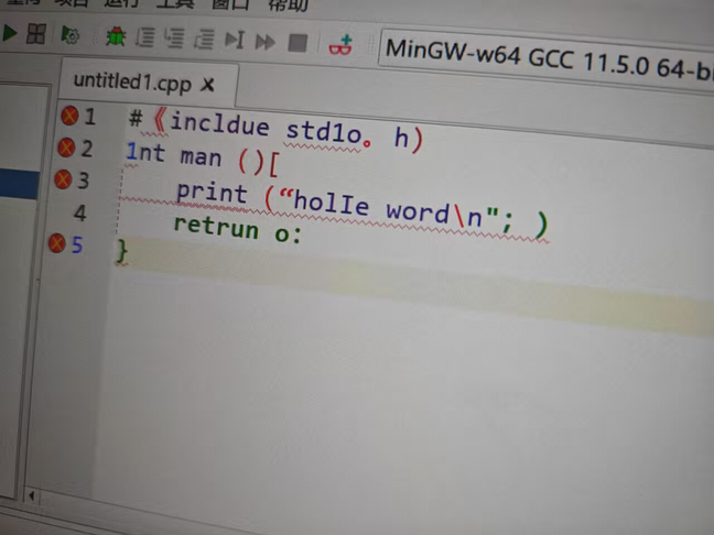 dream在初次使用c语言编程时,编译器居然出现了几十个报错!于是他将自己的代码发到了群里询问原因......